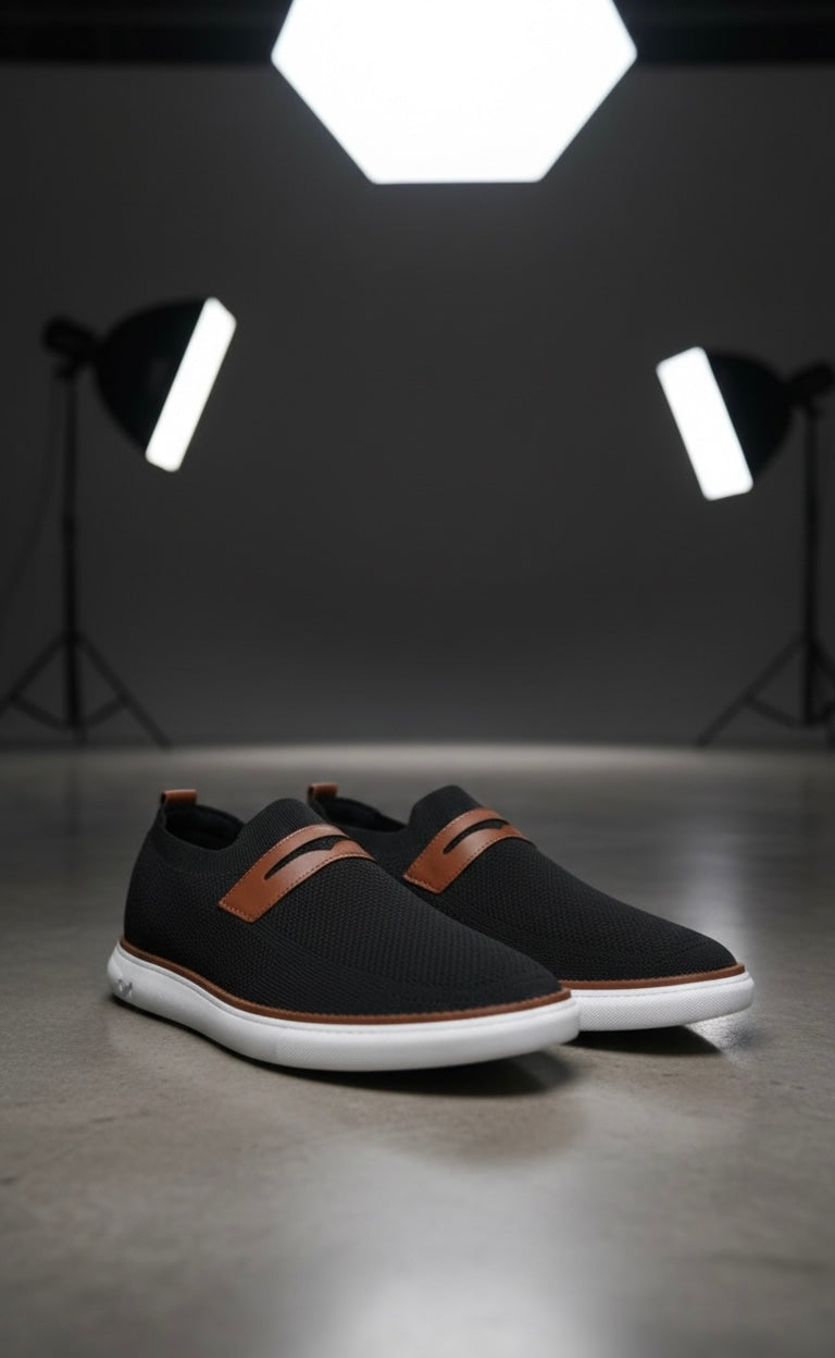 These stylish men’s casual shoes feature a breathable mesh upper in a classy tone, designed for all-day comfort and modern appeal. The lightweight construction, soft inner lining, and cushioned white sole provide excellent support for daily wear. Perfect for casual outings, office wear, or smart-casual looks, these shoes combine comfort, durability, and effortless style.